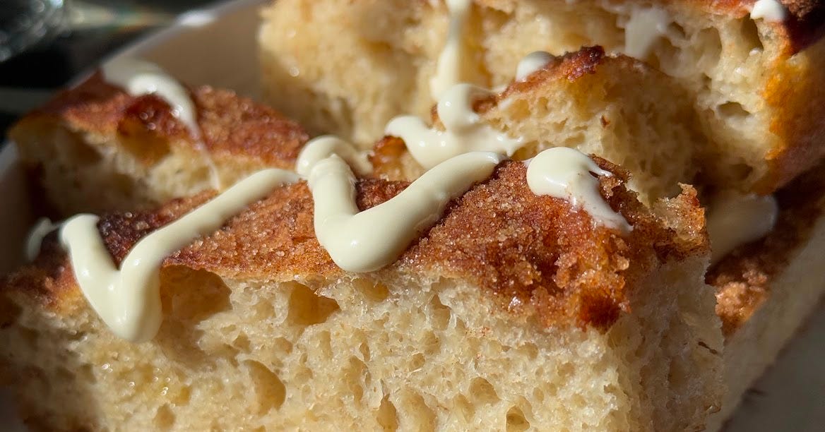 Love this - sweet and salty breakfast is the best. And I want that cinnamon roll focaccia!